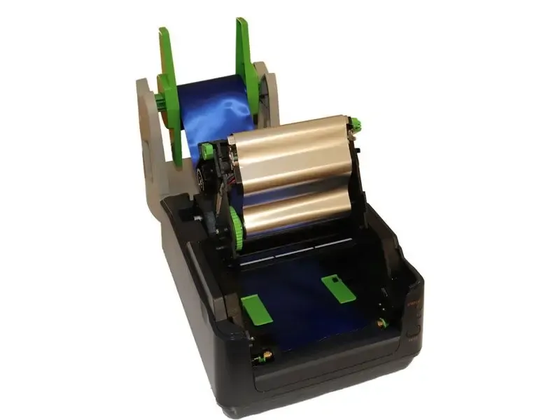 A fully setup printer with external ribbon holder has a footprint of 20cm wide by 60cm deep, allows the printing system to be used by business ranging from small microentities operating from out of personal premised up to large corporates operating from retail stores / warehouses. The new all black design with see through lid allows the printer to be unobtrusive and integrate into your workplace. The system can be up and running in a matter of minutes.